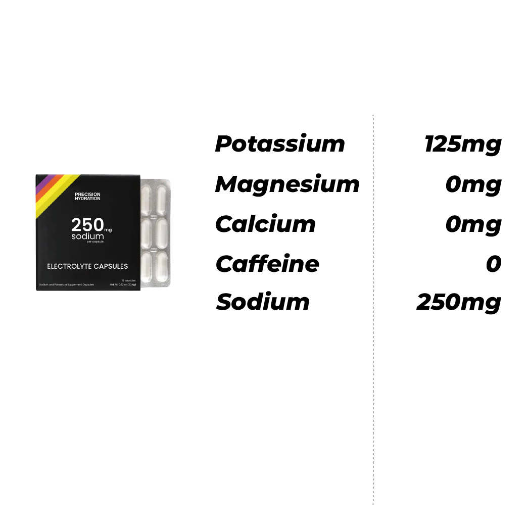 • Each capsule contains 250mg of sodium, making them stronger than most electrolyte capsules